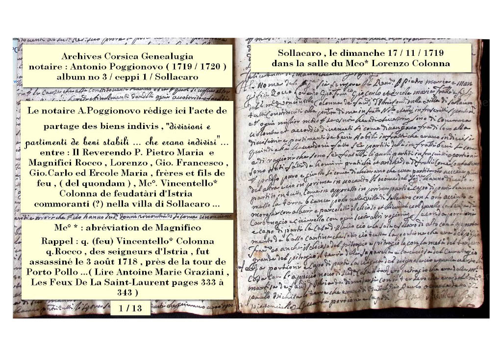 Testament du Magnifique Vincentello Colonna feudataire d'Istria