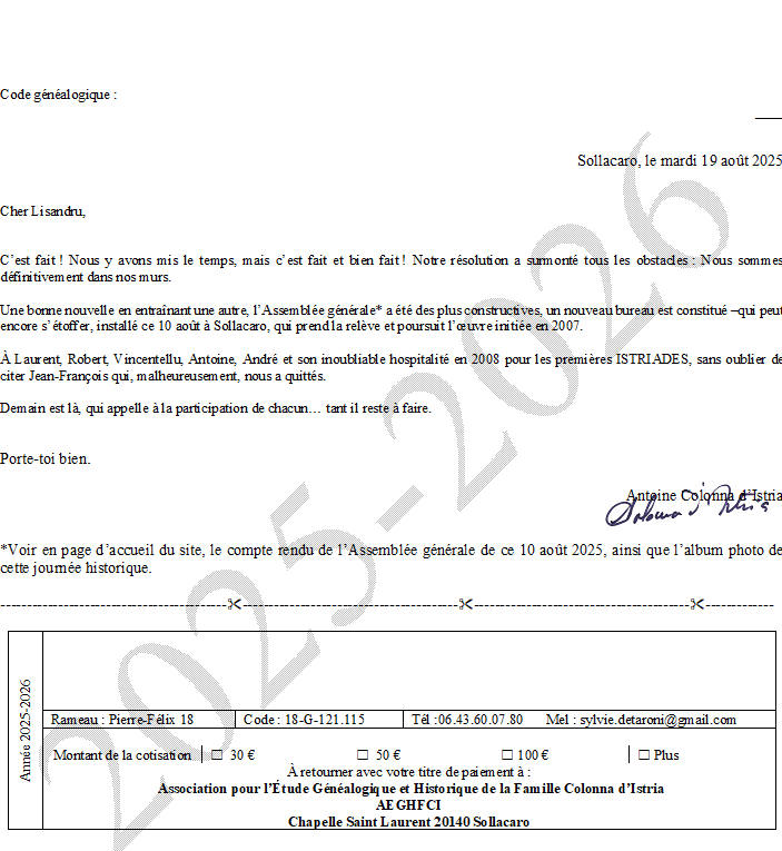 Association pour l’Étude Généalogique et Historique de la Famille Colonna d’Istria